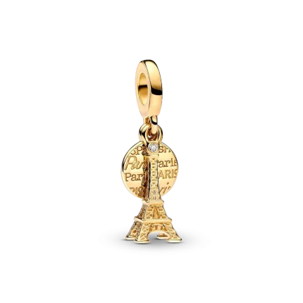 Paris Eiffel Tower Lab-Grown Diamond Engravable Double Dangle Charm
