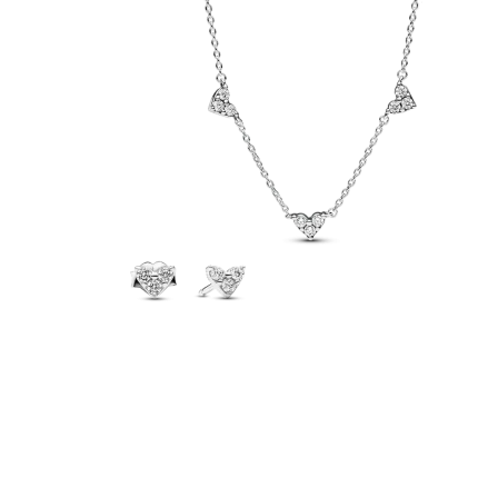 Let your love shine with our Triple Stone Heart Station Necklace and Earring Set. Crafted in sterling silver, our new