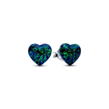 Channel the heart of the jungle with the Opalescent Green Heart Stud Earrings. A lab-created, heart-shaped iridescent opal features a