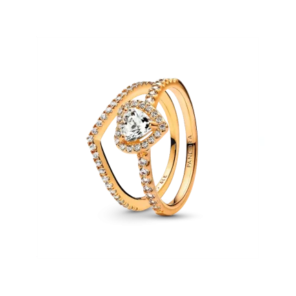 Playful Love Golden Elevated Heart Sparkling Band Ring Set