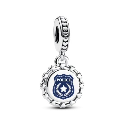 Honor the courage and sacrifice of law enforcement with this Engravable Police Dangle Charm in sterling silver. Featuring a row