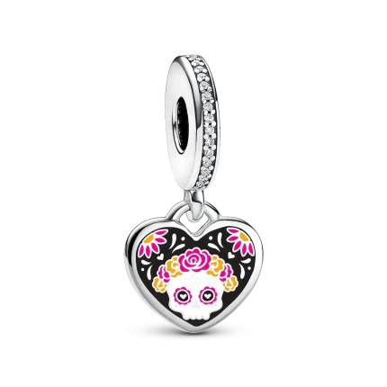 Day of the Dead Sugar Skull Heart Dangle Charm