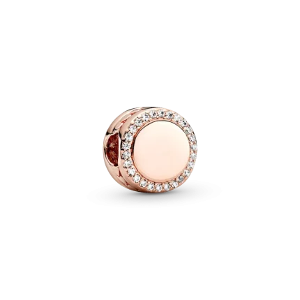 Add this simple-yet-sleek charm to your Pandora collection. This polished Engravable Sparkling Button Charm is hand-finished in 14k rose gold