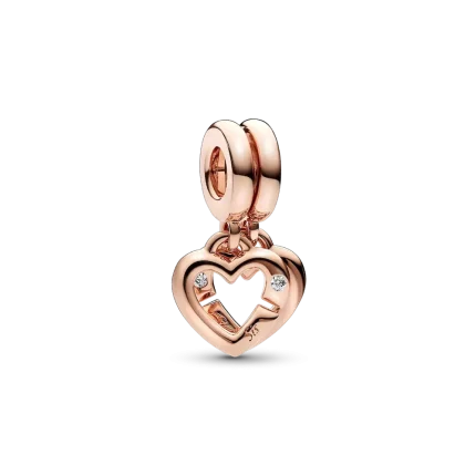 Show off your sisterly bonds with the Linked Sister Hearts Split Dangle Charm. Finished in warm 14k rose gold plating,