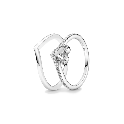 Classic stackable ring set that is both sleek and elegant. The sparkling heart design styled with the polished wishbone is