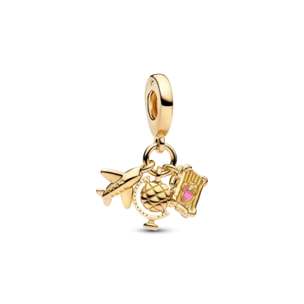 Airplane, Globe & Suitcase Triple Dangle Charm