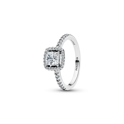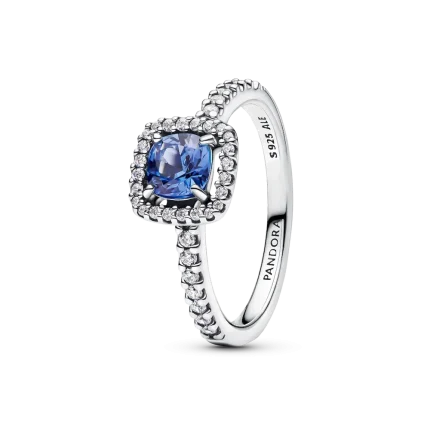 Sparkling Square Blue Halo Ring