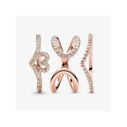 Heart of Rose Princess Wishbone Stacking Ring Set