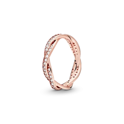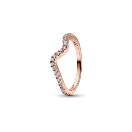 Hand-finished in 14k rose gold plating, our Sparkling Wave Ring curves to resemble the movement of a wave and features