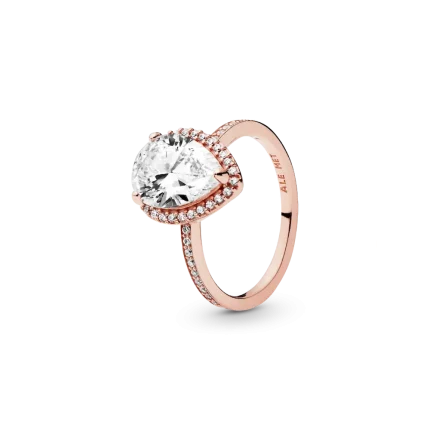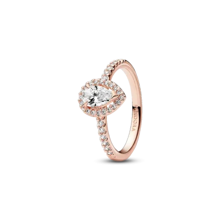 Inspired by vintage jewellery box treasures, this showstopping Sparkling Teardrop Halo Ring features 14k rose gold plating. It’s set with