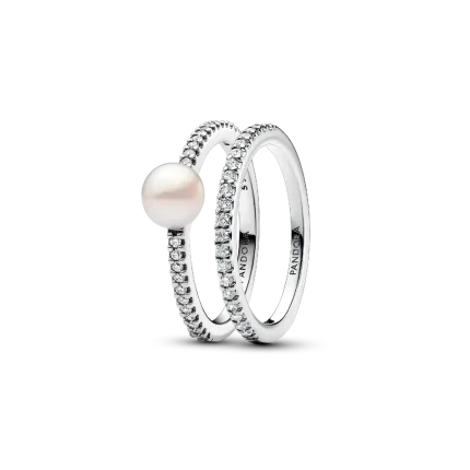 Treated Freshwater Cultured Pearl & Pavé Double Band Ring