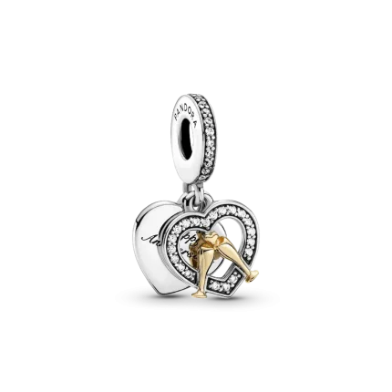 Celebrate a special moment with our Two-tone Happy Anniversary Dangle Charm. Featuring two heart-shaped discs in sterling silver, the front