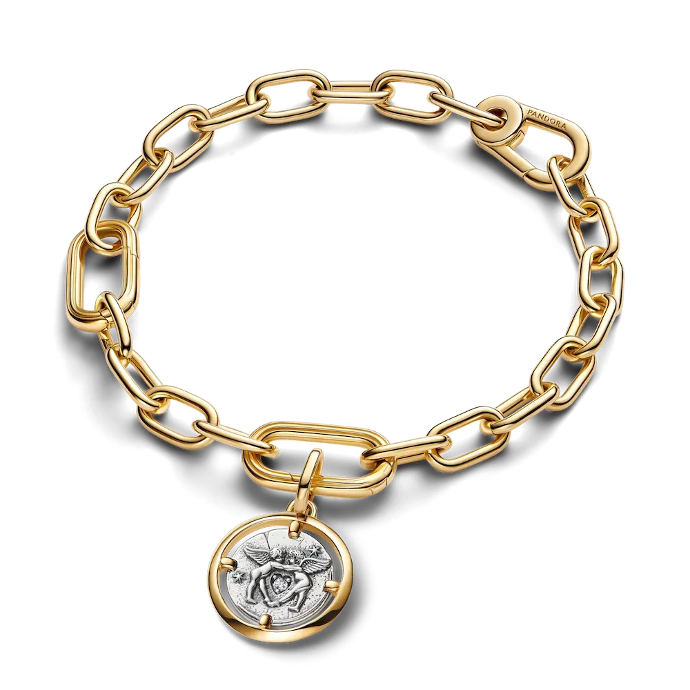 Embrace your destiny with a set inspired by ancient coins. This mixed metal medallion features the engraved Latin message ‘AMOR FATI’. Pair with our 14k gold-plated link chain bracelet for a look rich in meaning.