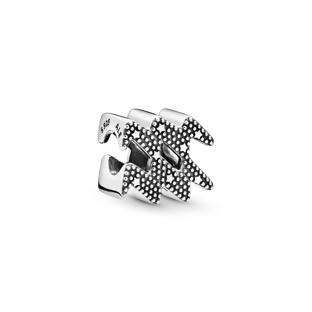 Show the world who you are with this sparkling Aquarius Zodiac Charm Bracelet Set. Known for being revolutionaries and great thinkers, Aquarians have always aspired to change the world with their big ideas and imaginations. They are enigmatic, unique, and have a personality that is quite unlike any other. Celebrate yourself or a special Aquarius with this two-sided Sparkling Aquarius Zodiac Charm that is hand-finished in sterling silver with beaded details on the back and cubic zirconia on the front. Complete with a stunning Heart Clasp Snake Chain Bracelet, hand-finished sterling silver.