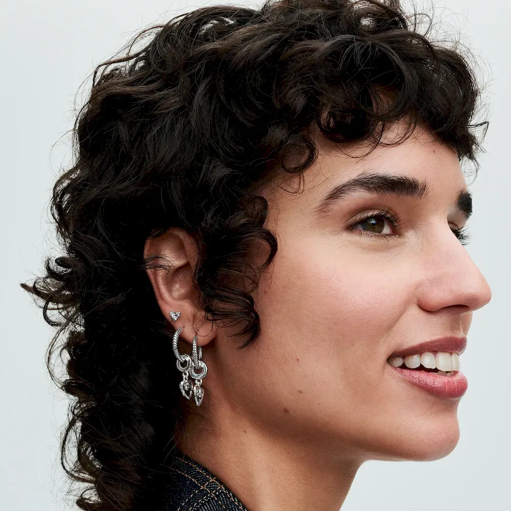This set includes sterling silver hoop earrings featuring our signature snake chain pattern and an engravable heart charm with a radiant green man-made crystal for August. Add a heartfelt message to make it truly yours.