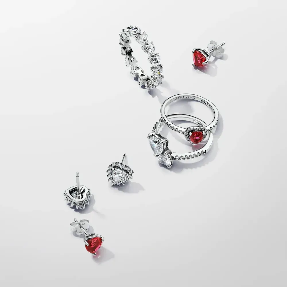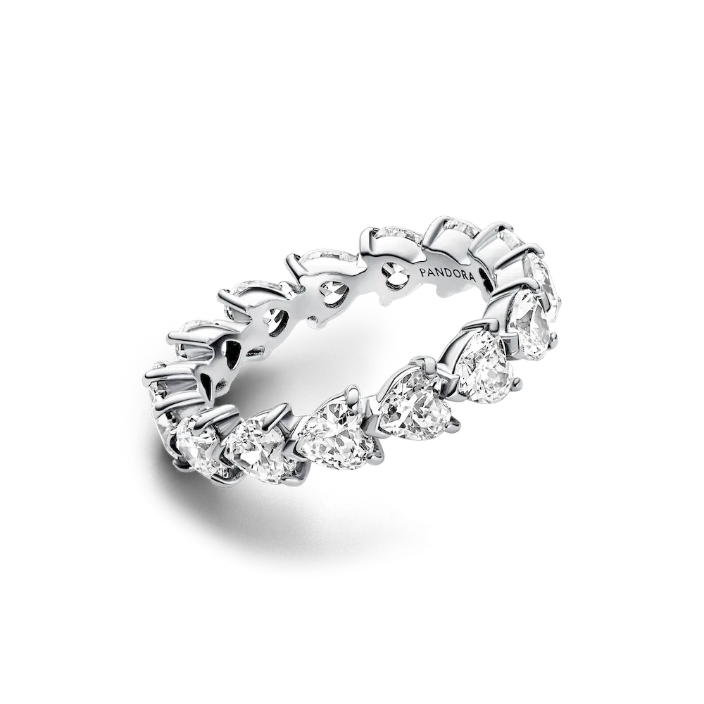 Make a bold statement of love with the Band of Clear Hearts Ring. Heart-shaped stones and V-shaped prongs repeat to create this sparkling eternity ring – a contemporary take on the classic heart-shaped setting. Wear it as a symbol of everlasting love, or stack it with our other Pandora Timeless eternity ring styles for maximum sparkle. Pairs perfectly with the matching Sparkling Heart Hoop Earrings for an elegant Valentine’s Day look.