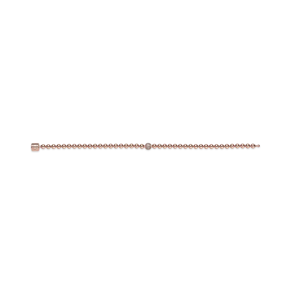 When you want to wear chunky and edgy beads with an elegant twist, this 14k rose gold-plated Beads & Pavé Bracelet is a perfect choice. The bracelet takes its inspiration from the alternative looks of body piercings and punk-inspired styles and adds a polished, refined twist. It features a fully beaded chain with one large pavé-set bead and a barrel clasp. The bracelet is designed to be worn alone or stacked with other bracelets in different metal finishes for the ultimate look.