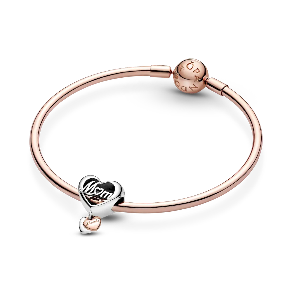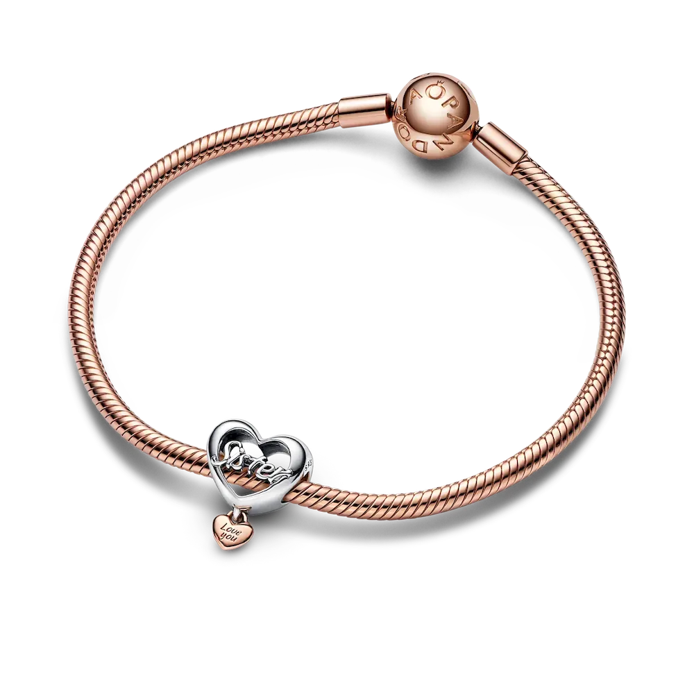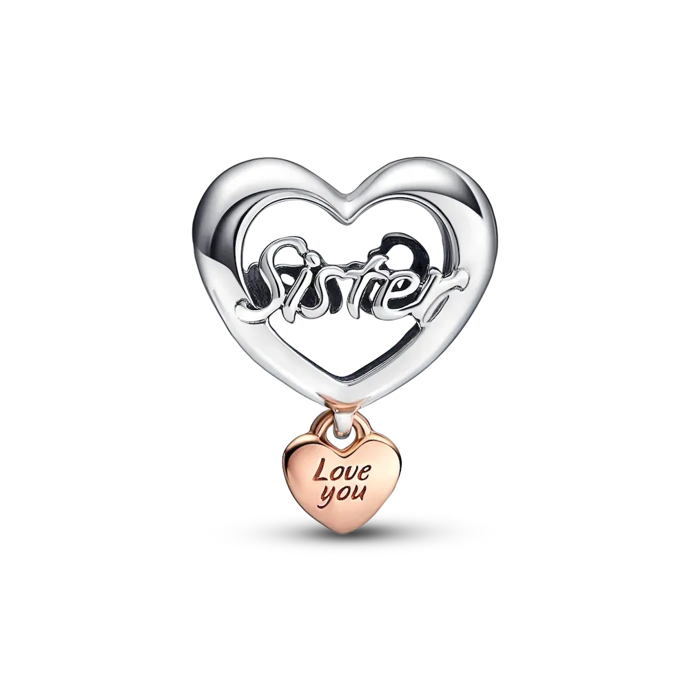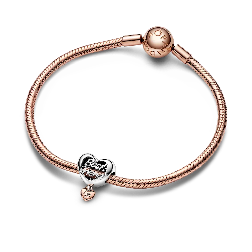 Treat your bestie, your sister or your mom to a beautiful representation of the bond you share. The Love You Sister Heart Charm and Love You Best Friend Heart Charm are both two-toned in sterling silver and 14k rose gold-plating with a smaller heart dangling from the bottom with the engraving “Love You.” The Thank You Mom Heart Charm features openwork design with “Mom” on the front and “Thank you for being there” on the back, and double hearts attached to the bottom with “Love” and “Thanks” engraved.