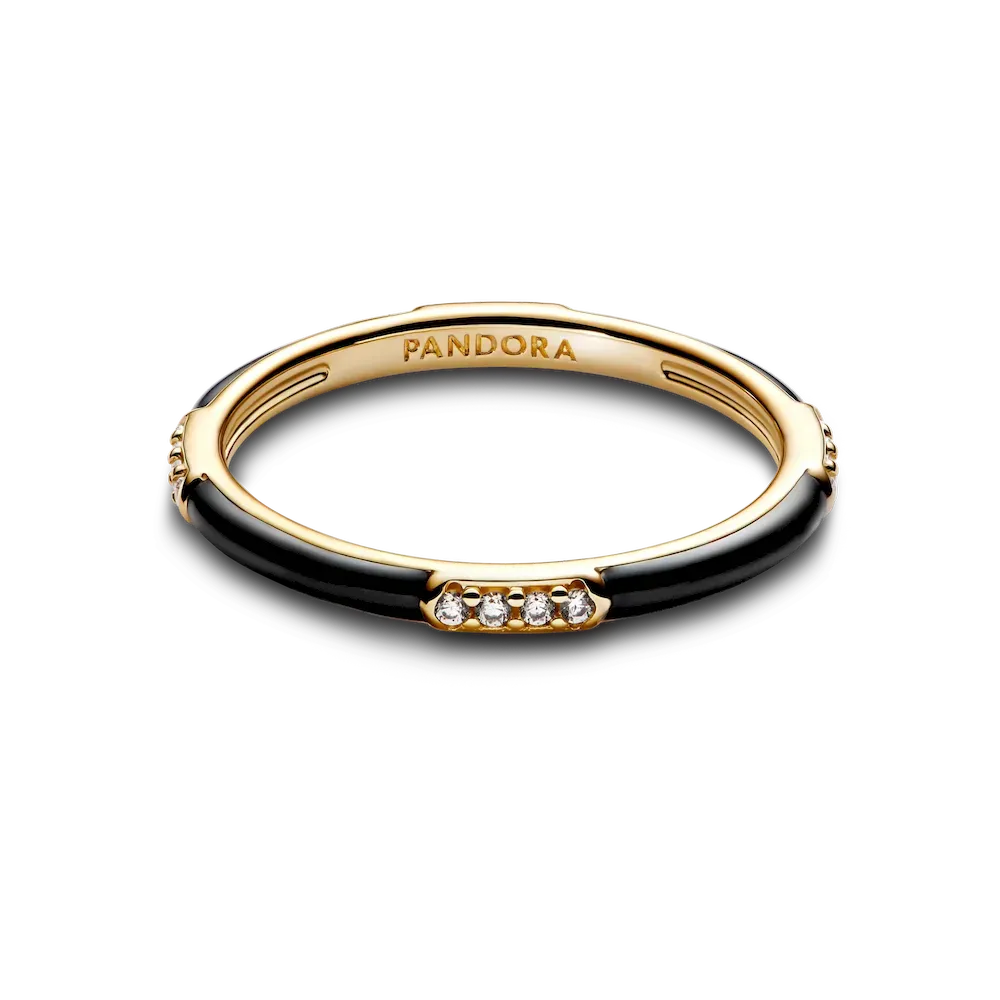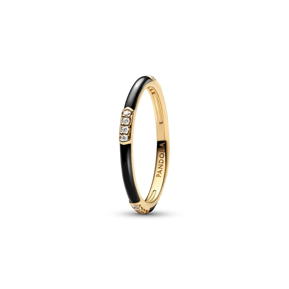 Crafted from a 14k gold-plated unique metal blend, this statement ring features 16 bead-set round brilliant-cut cubic zirconia, set against sleek black enamel. The design showcases alternating bands of sparkling stones and enamel, which creates an eye-catching contrast. Inspired by strength and resilience, this ring is perfect for expressing your individuality.