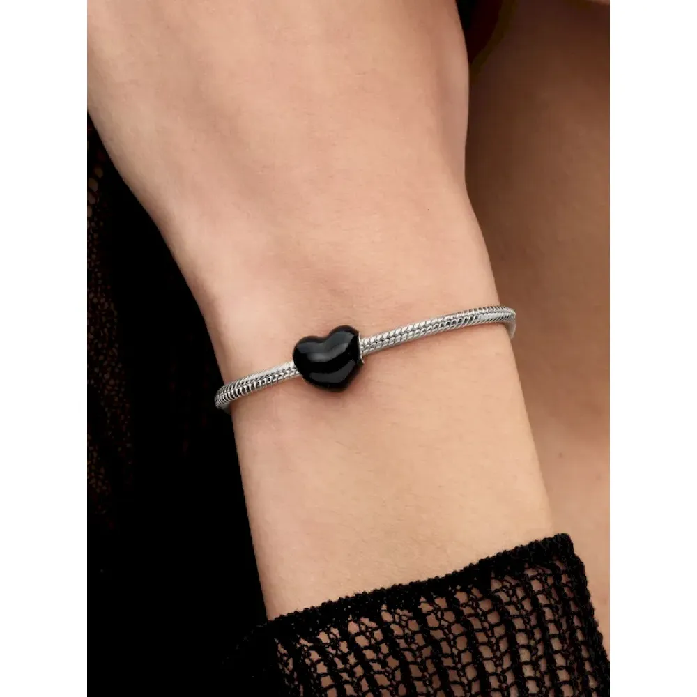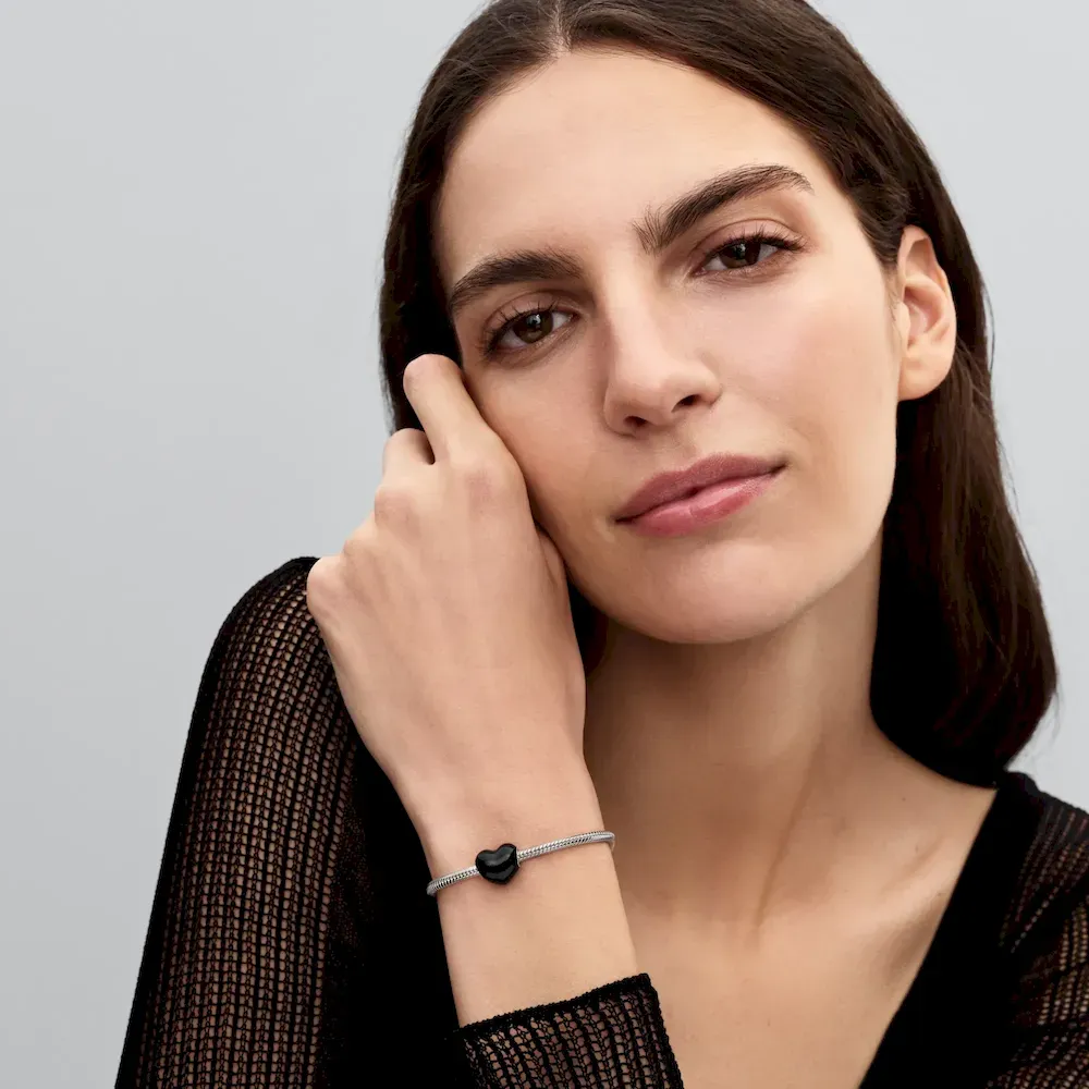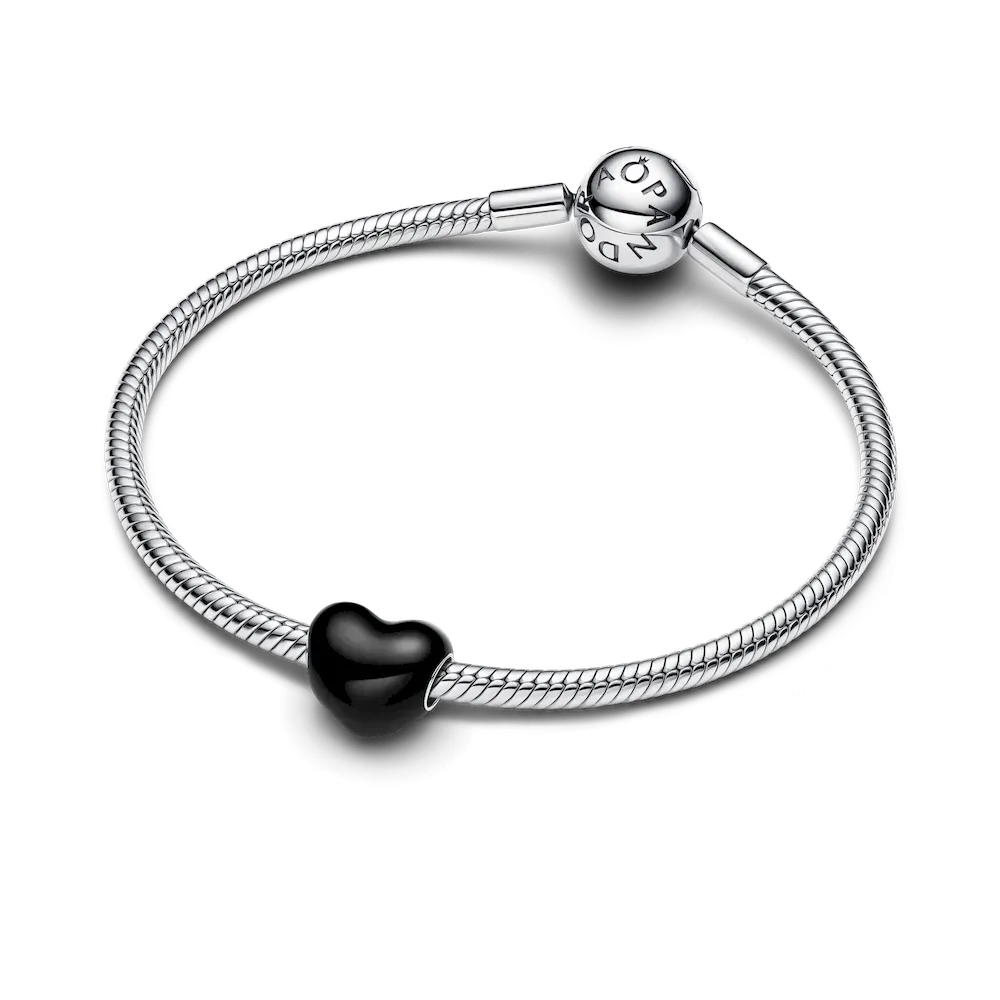 Bring a touch of mystery to your look with our Black Heart Charm. It’s decorated in black enamel that allows a flash of sterling silver to shine through. Inspired by the power of colour, this charm lends elegance and restraint to any collection.