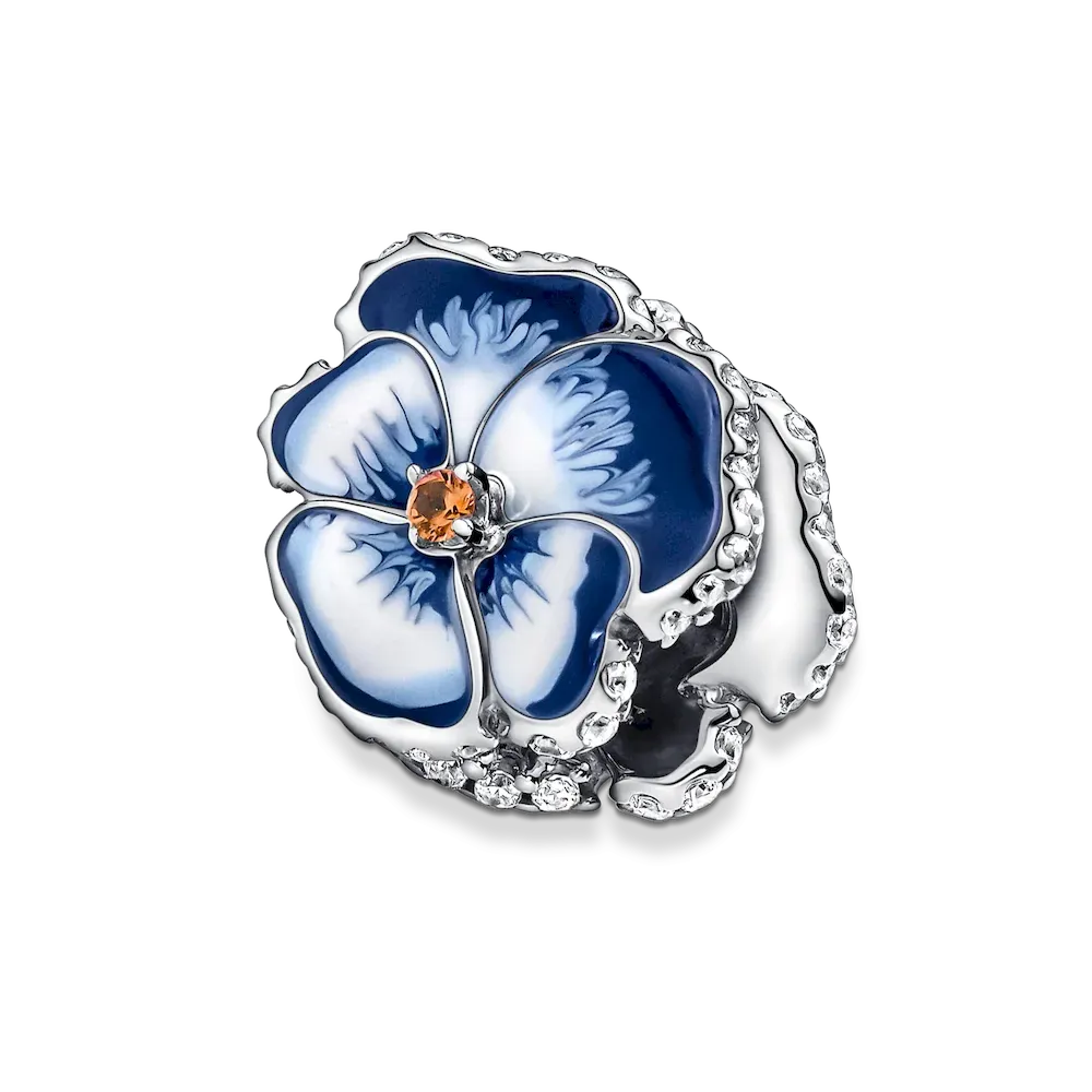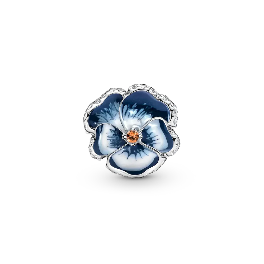 Color your spring with our Blue Pansy Flower Charm. Set in sterling silver and accented with sparkling stones, each pansy is finished with hand-painted enamel, making every flower completely unique. The newest flower to grace our garden, pansies symbolize love in its many forms. Wear yours as a reminder of all the loved ones in your life and style it with other pieces from our pansy collection for a coordinated look.