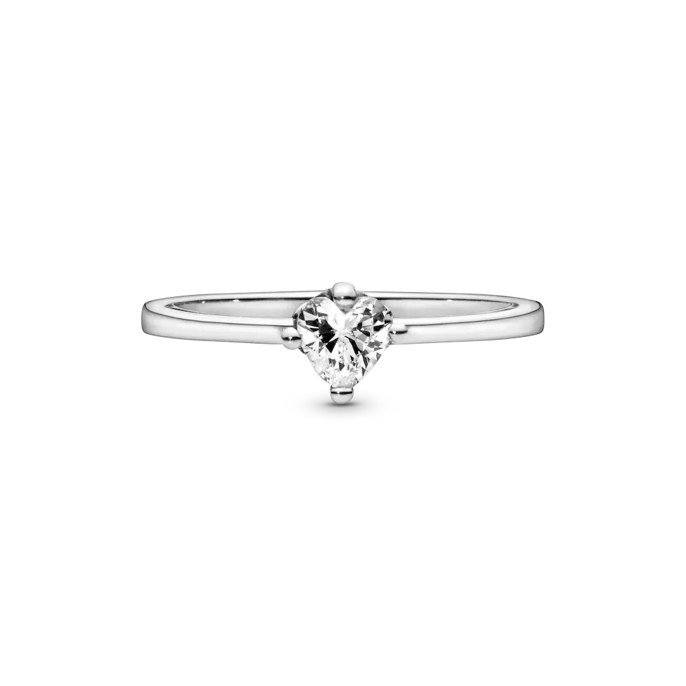 This solitaire ring features the symbol of a promise: a single heart-shaped clear cubic zirconia. Perfect as a gift to your loved one, this sterling silver ring offers up the emblem of a solitary heart—your heart—for the wearer to love and cherish. Look at the heart solitaire ring closely and you’ll see the claw setting has freehand heart outlines. This ring stacks well with others from this collection to add a little sparkle to your everyday.
