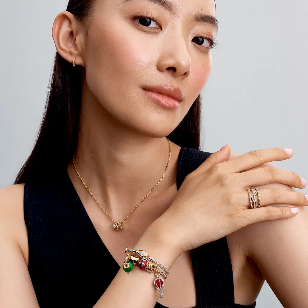 Celebrate the Year of the Snake with our 14k gold-plated charm. This curled snake design features a scaled pattern, encrusted with 28 bead-set and 3 micro cubic zirconia, plus microbead eyes. Wear yours as a symbol of the Chinese zodiac animal for 2025, an emblem of intelligence and transformation.