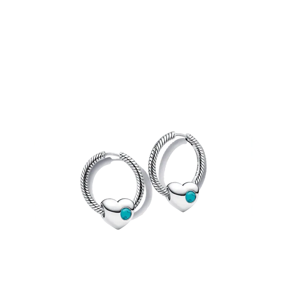 This set includes sterling silver hoop earrings featuring our signature snake chain pattern and an engravable heart charm with a turquoise-inspired stone for December. Add a heartfelt message and make it yours.