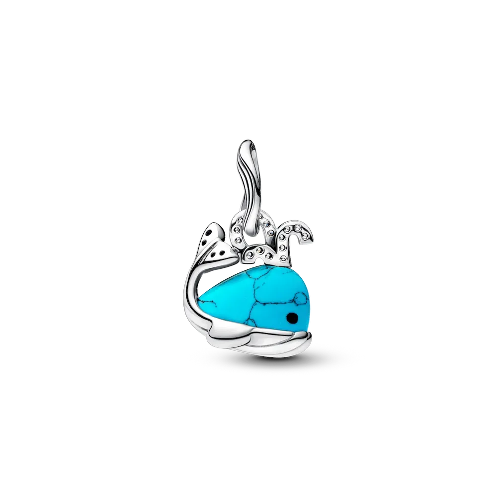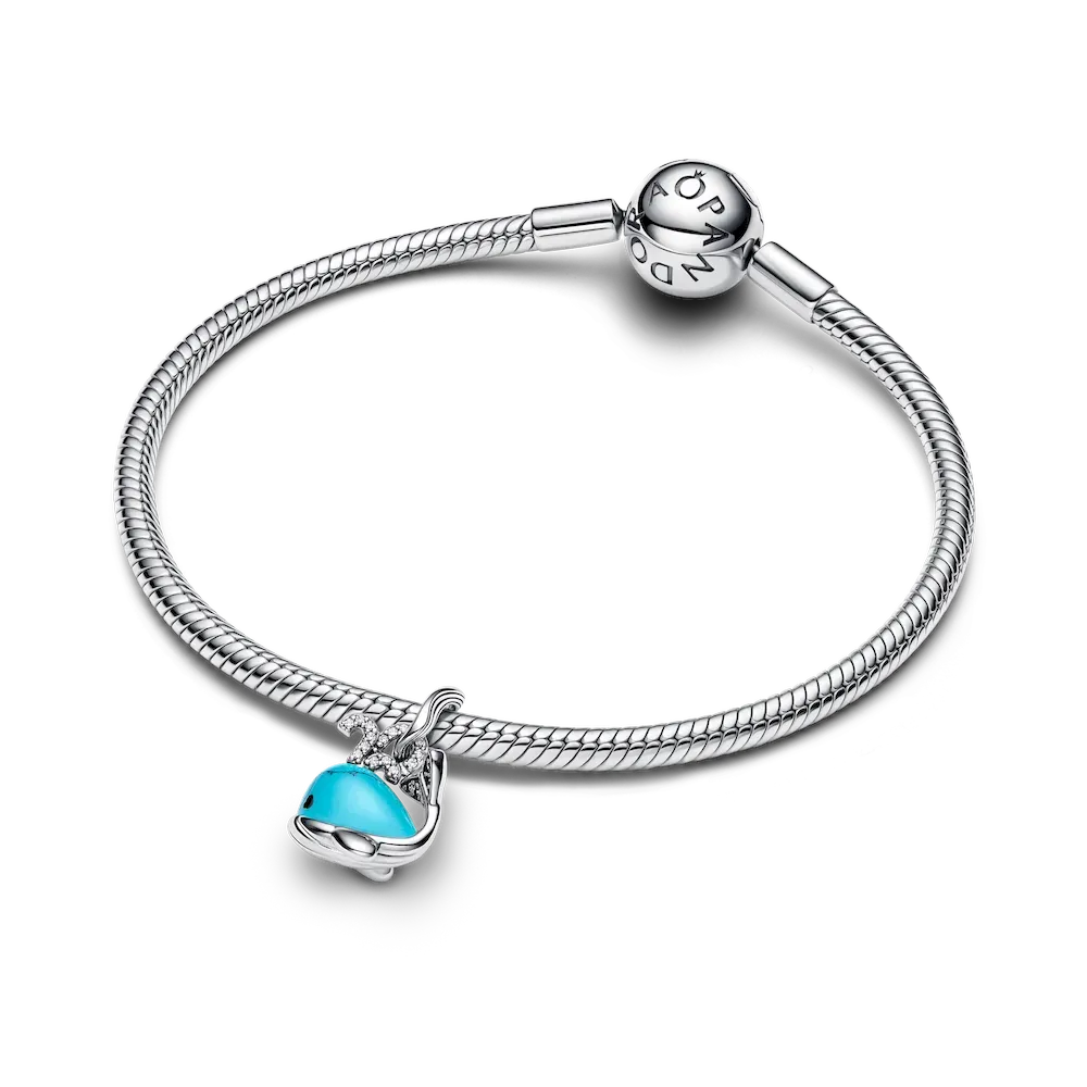 Celebrate beautiful ocean creatures with a trio of charms in a dolphin, whale and starfish design. Each charm is crafted in sterling silver and features a blue Murano glass detail.