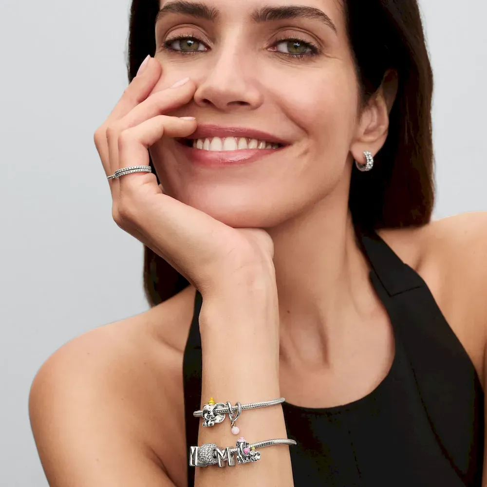 The Precious Mom Charm Set celebrates the beauty of motherhood. Featuring the Disney Dumbo & Mom charm, a Two-tone Wrapped Heart with a pink opal, and a colorful Pink Mini Murano Glass charm, the perfect gift for Mom.