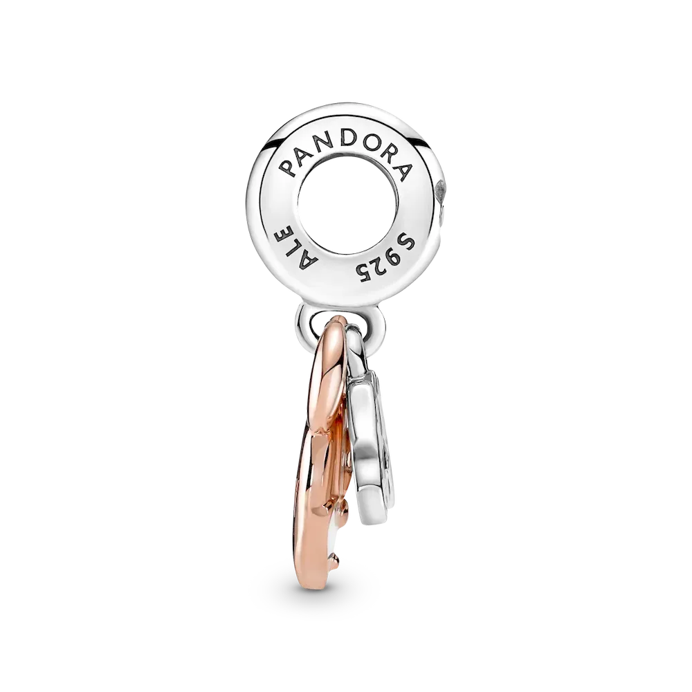 This Disney Mickey Mouse Double Dangle Charm is the perfect reminder to always be yourself and trust in who you are. Hand-finished in sterling silver and 14k rose gold plating, this charm features Disney’s Mickey Mouse peeking through his hands, with two separate elements of the charm that allow him to lift his hands away from his eyes and come out from hiding. Decorated with white enamel details and an engraving on the back that reads