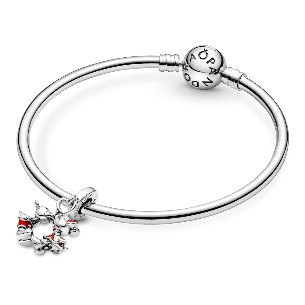 This Disney Mickey & Minnie Mouse Kissing Dangle Charm celebrates romance with one of the most iconic couples in the world. The cute kissing couple are hand-finished in sterling silver and decorated with red enamel and sterling silver beading. This adorable Disney x Pandora charm represents a happily ever after and would make a special gift for the one you love.