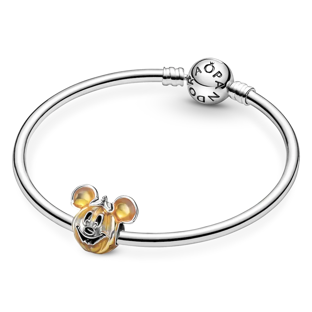 Definitely more of a treat than a trick, this sterling silver Disney Mickey Mouse Pumpkin Charm will bring a spooky vibe to your looks all year round. Featuring hand-applied, transparent orange enamel that transforms Disney’s Mickey Mouse into a metallic jack o’ lantern, this cute charm includes the word “Boo” in raised letters on the back and is inspired by the pumpkins that decorate Disney World every year at Halloween.