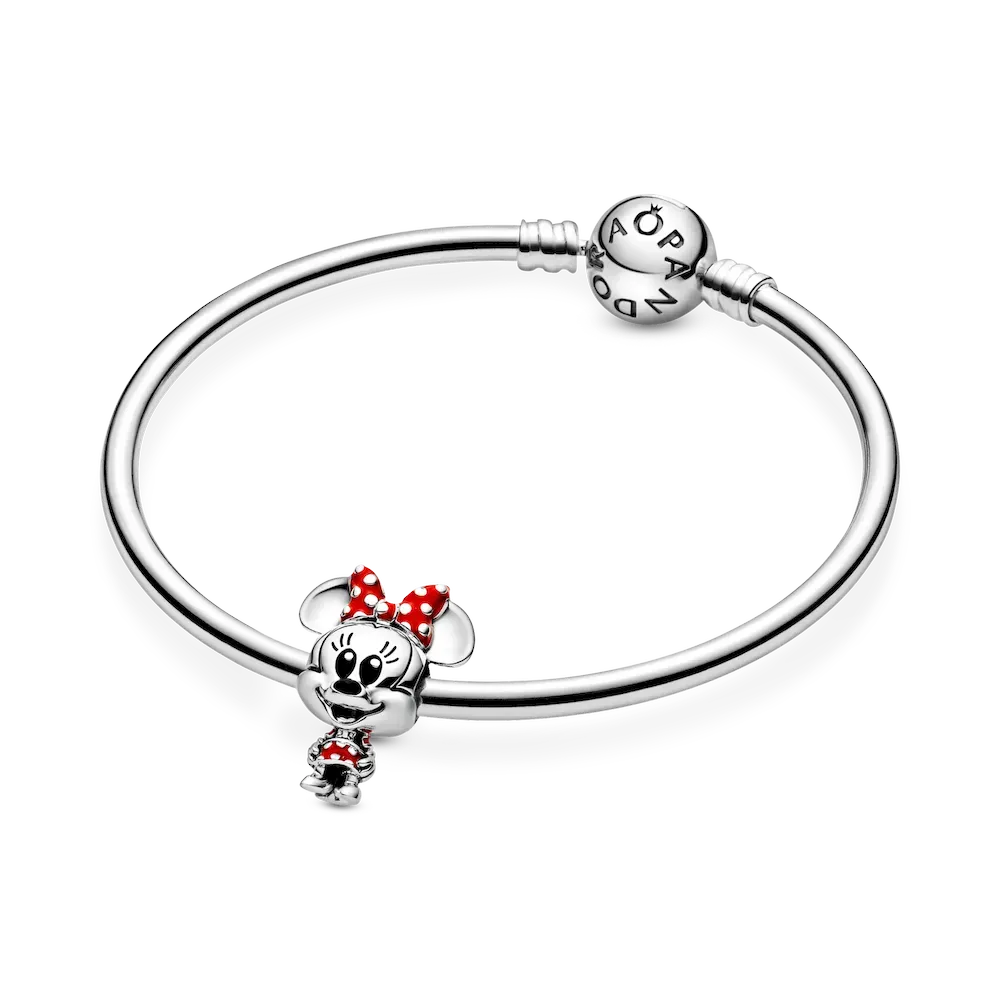 Collect one of your childhood icons with this hand-finished Disney Minnie Mouse charm from the Disney x Pandora Favorites series. Created in collaboration with Disney’s in-house toy design team, the mouse’s design is centered on her enlarged ears and head and smaller body that highlights her happy face. The Minnie Mouse sterling silver charm features her signature red outfit and black hand-applied enamel eyes. Wear it with your favorite Disney x Pandora charms to create your own style adventure.