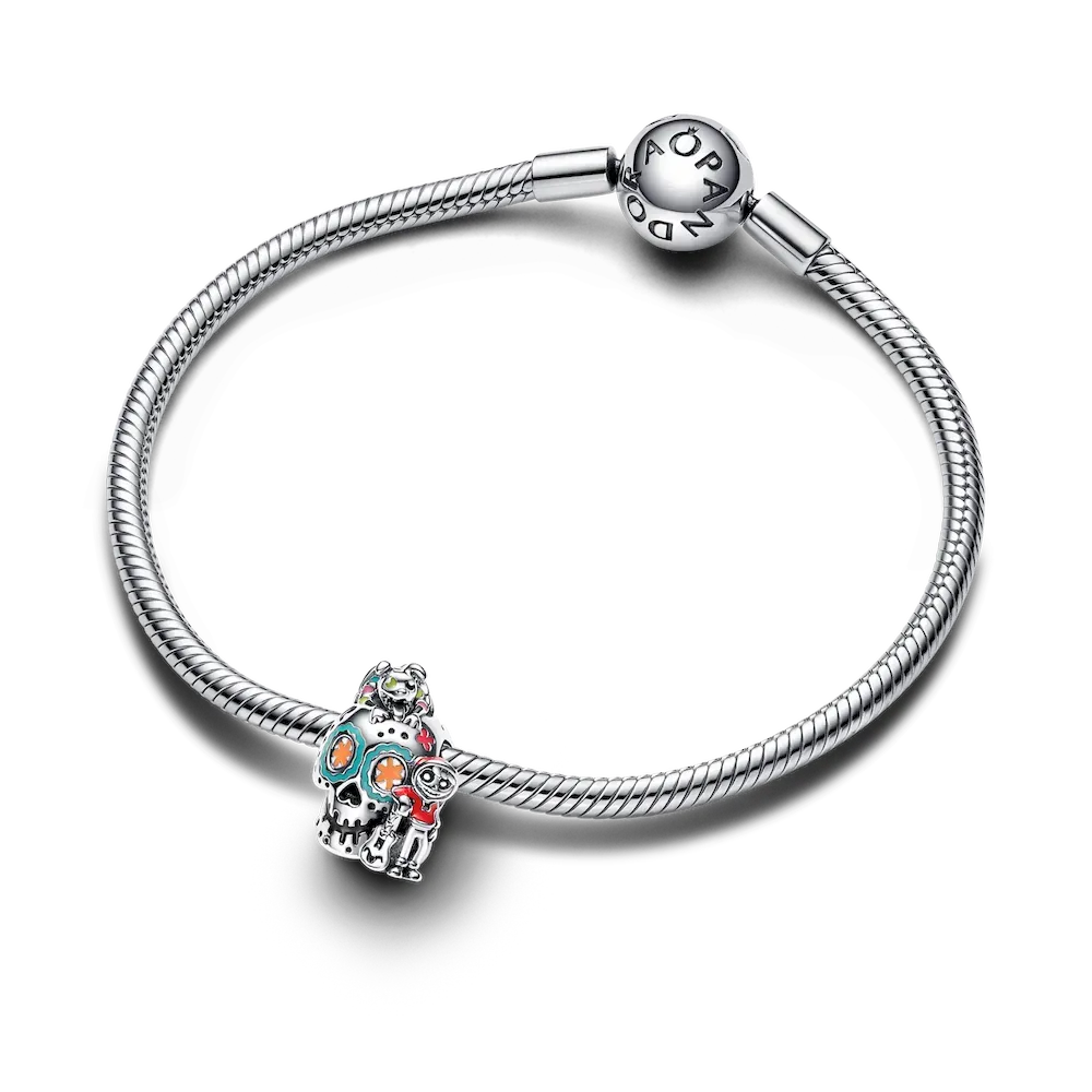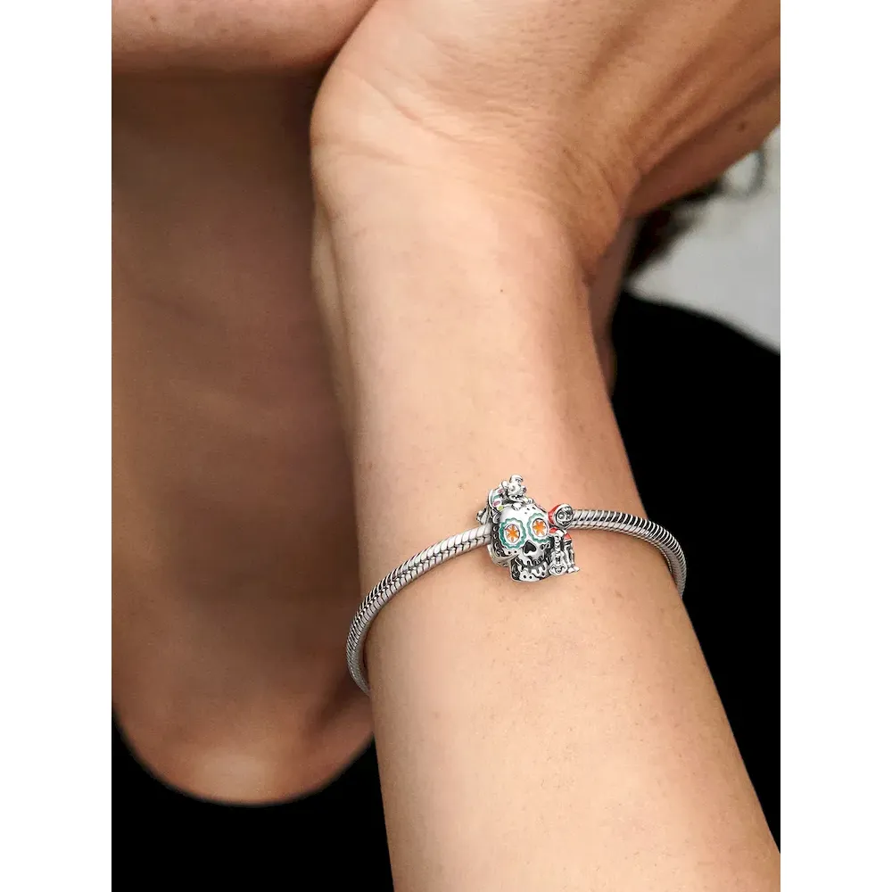 Celebrate the power of family with the Disney Pixar Coco Miguel & Dante Skull Glow-in-the-dark Charm. Made of sterling silver, this charm features much-loved characters Dante and Miguel from Disney and Pixar’s Coco film. Colourful enamel details – some of which are glow-in-the-dark – pop from the silver base, which has cut-out, grooved and imprinted details. For Disney lovers and charm collectors alike, this skull charm is a tribute to the love and traditions that connect us across generations.