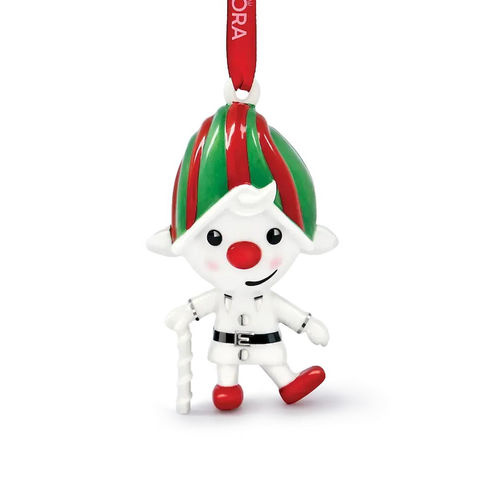 Add holiday cheer with this sterling silver elf charm and ornament set. The charm has movable limbs and glittery enamel, while the ornament features festive details. Perfect for collectors.