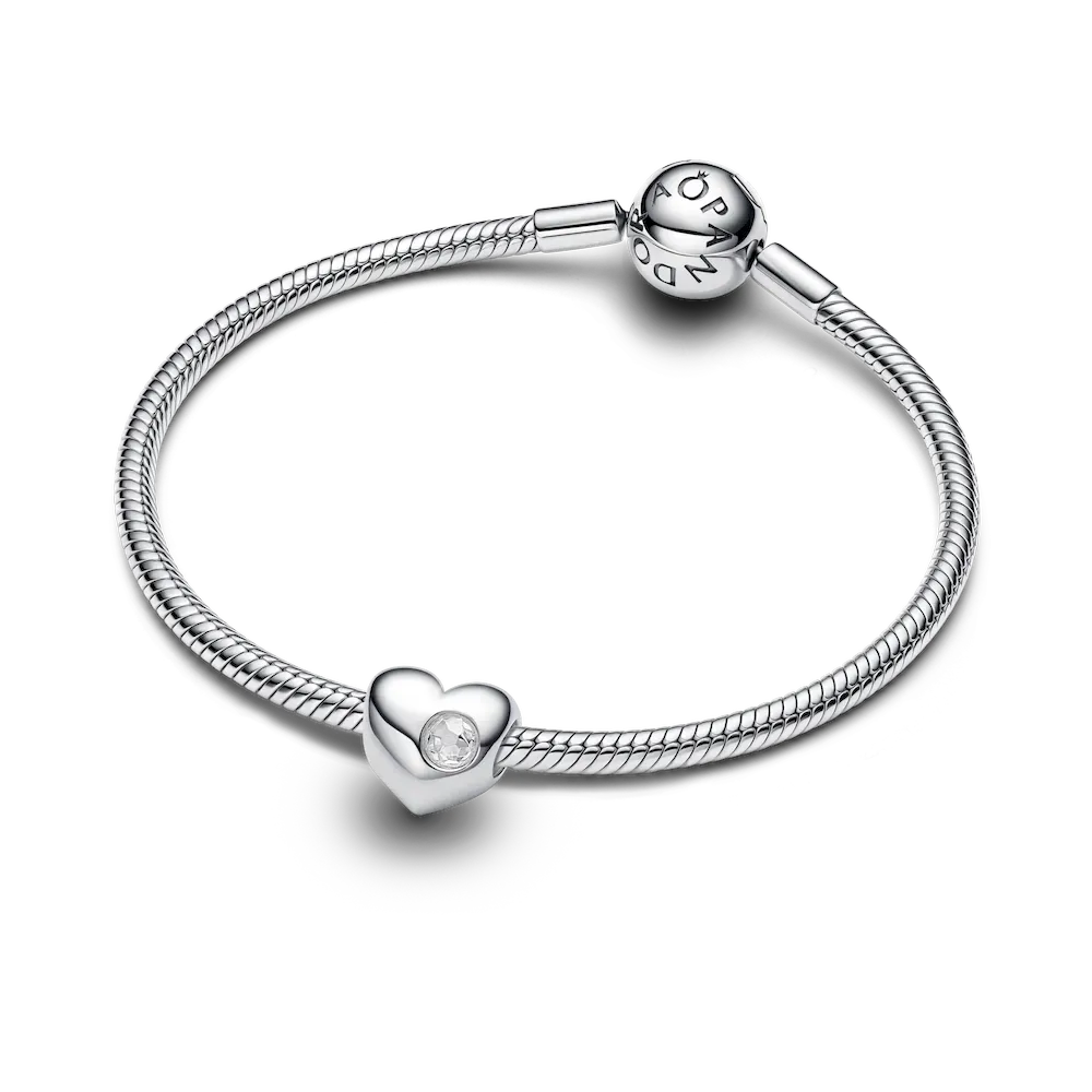 Engrave a message of love. Our sterling silver heart charm with a flush-set clear cubic zirconia is the perfect canvas for a personal note or meaningful memento.