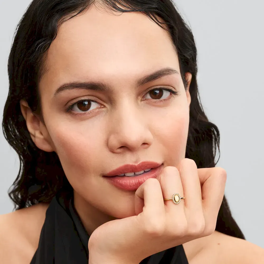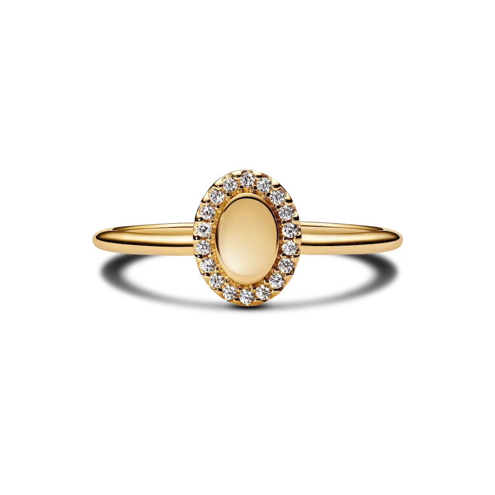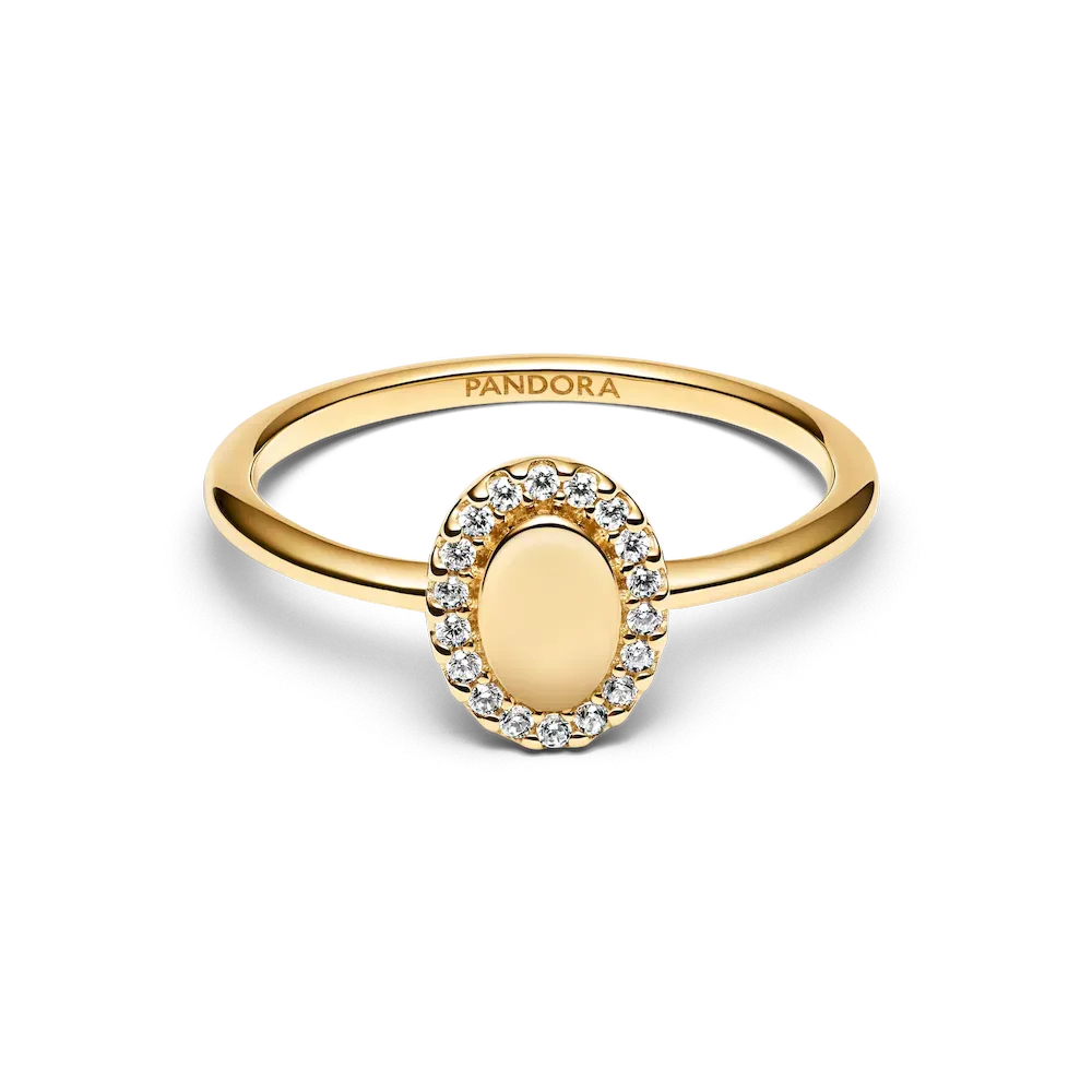 Make it personal with the Engravable Oval Halo Ring. This 14k gold-plated ring features a center oval surrounded by sparkling pavé. The polished heart is designed to be engraved with your custom message. Choose initials, a date, or a tiny reminder that will make you –or your gift recipient –smile every time they see it. The end result will be a sleek metal piece with one-of-a-kind meaning.