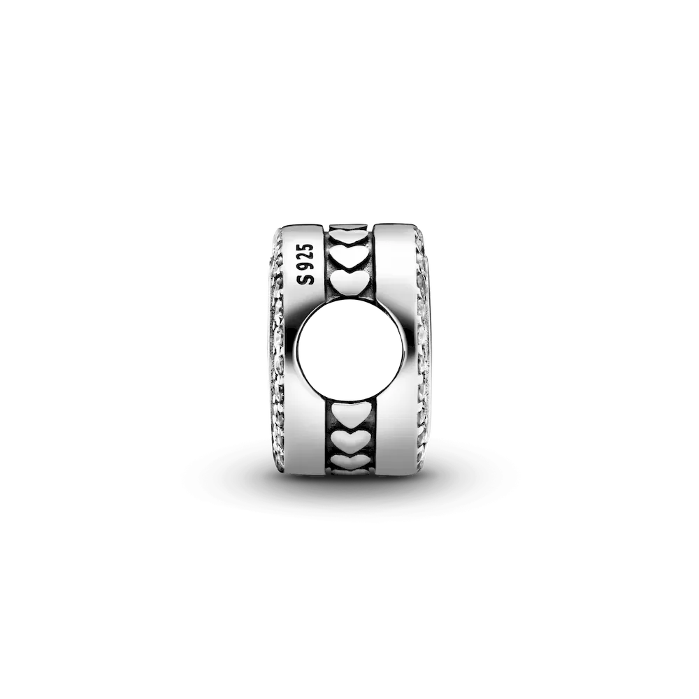 Add this simple-yet-sleek charm to your Pandora collection. This polished button charm is hand-crafted in sustainably sourced sterling silver and features 52 bead-set round brilliant-cut clear cubic zirconia stones in a delicate ring. This Pandora piece is all about self-expression: choose to keep it blank and let the symbol speak for itself or engrave the front, the back or both. Pandora Engraving is only available in select stores and markets.