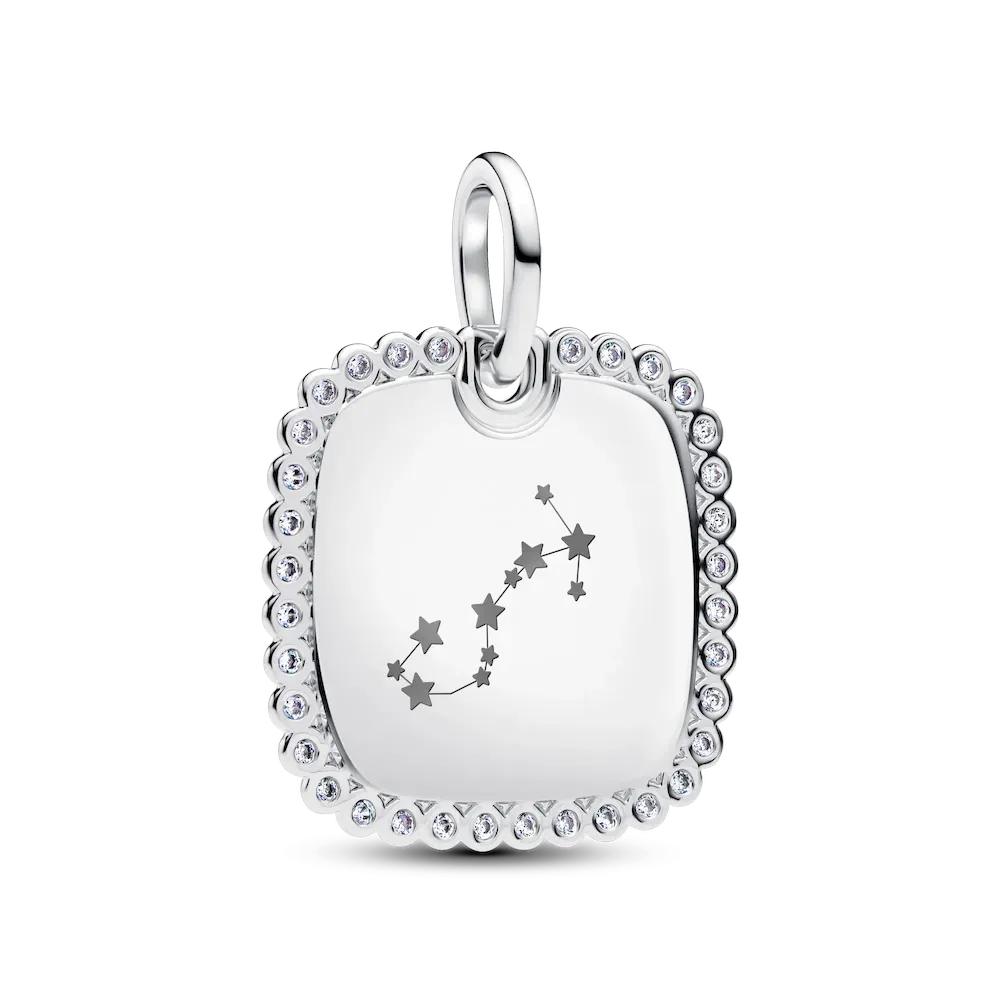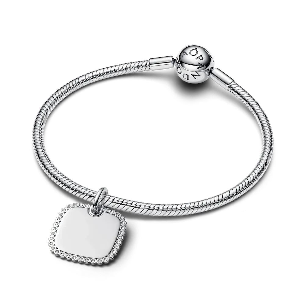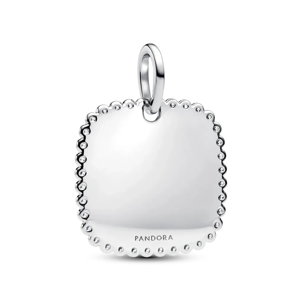 Minimalist style that makes a statement. Add our sterling silver engravable square disc pendant, outlined in a frame of sparkling stones, to your collection.