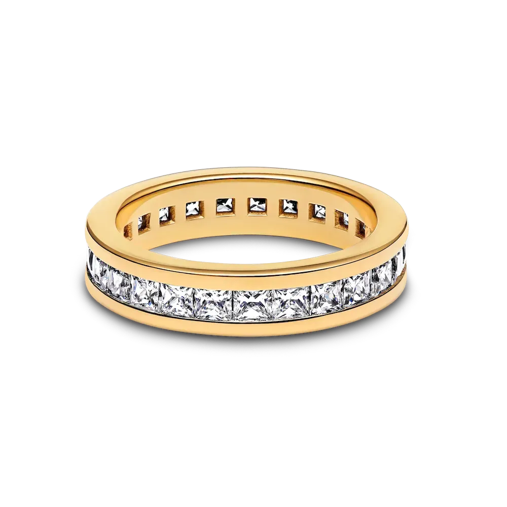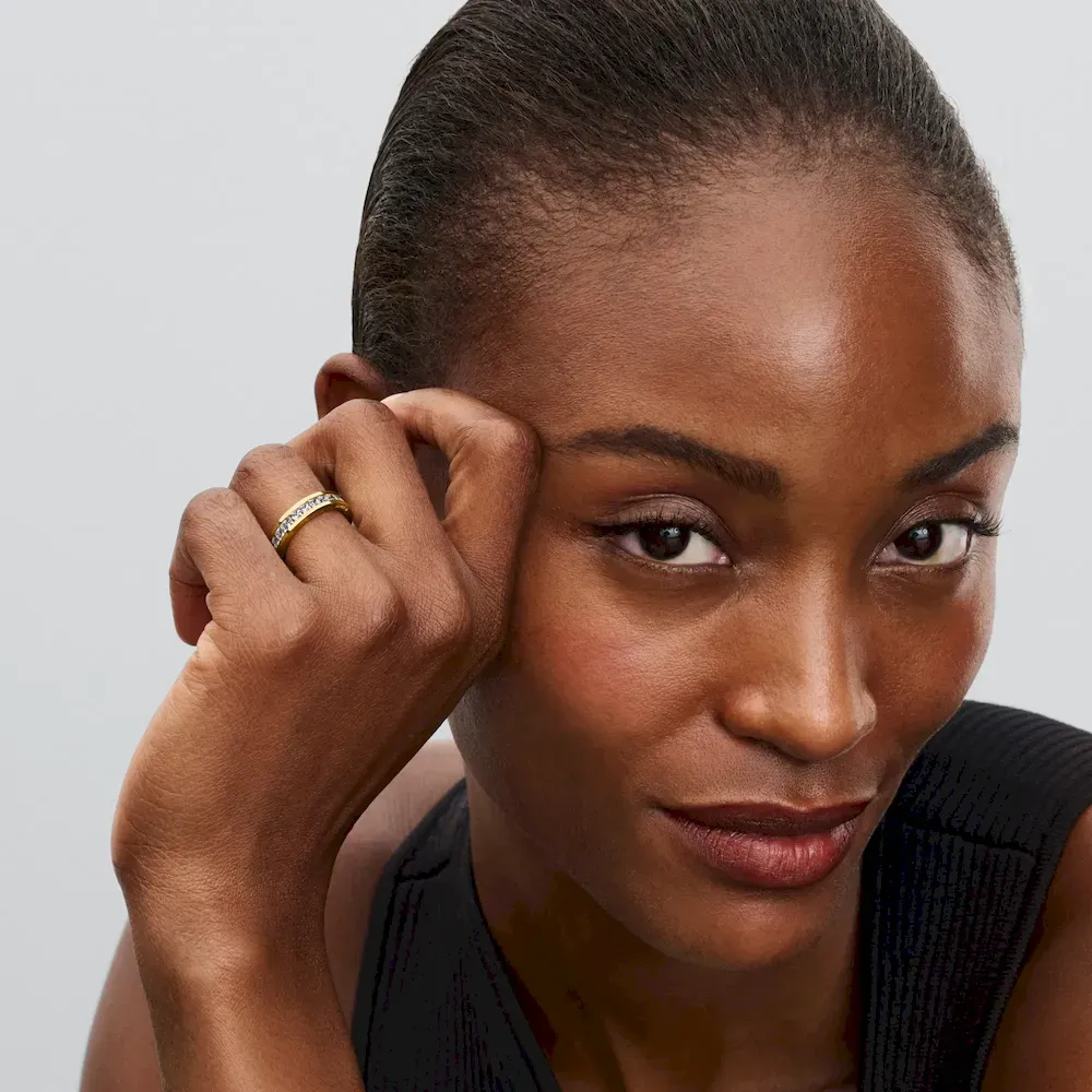 Choose a refreshed classic with the Eternity Channel Ring. Featuring a channel of sparkling stones set flush with a 14k gold-plated band, this ring can just as easily stand alone and steal the show –or join a stack and play nicely with others. Choose it as a go-anywhere addition to your look, or gift it to someone with great taste who appreciates a fresh spin on a classic.