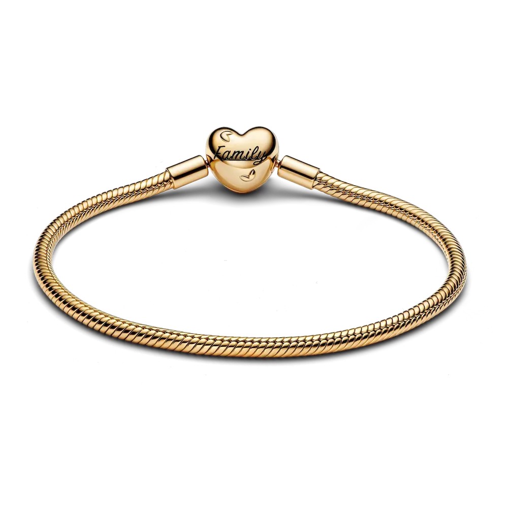 A symbol of your forever bond, this 14k gold-plated snake chain bracelet features a unique heart clasp that holds an openwork family tree motif. The tree’s leaves are bead-set round brilliant-cut cubic zirconia, while on the back of the clasp reads the word