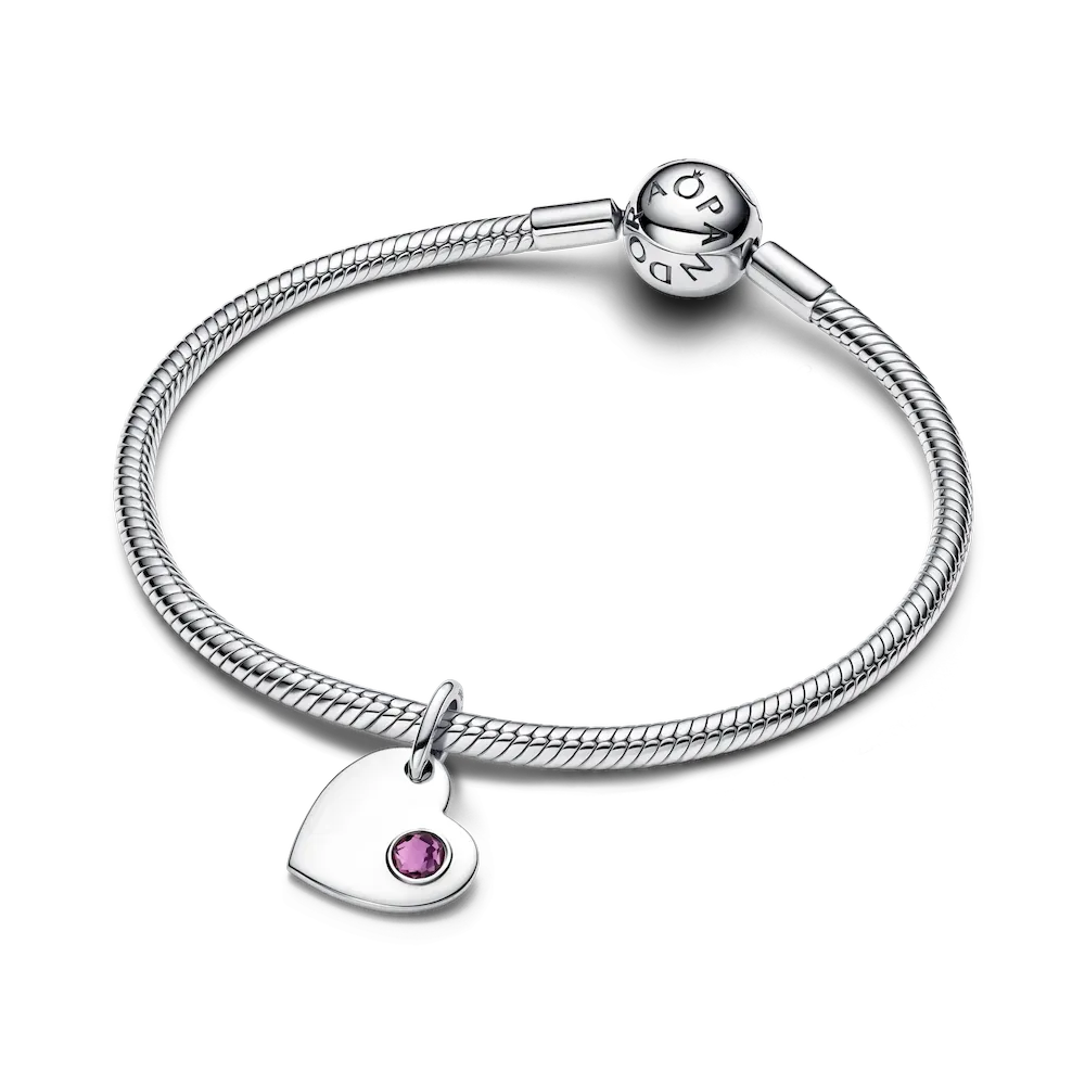 February babies, wear your birthstone color close to your heart. This sterling silver set includes a necklace and a dangle heart charm set with a sparkling purple man-made crystal.