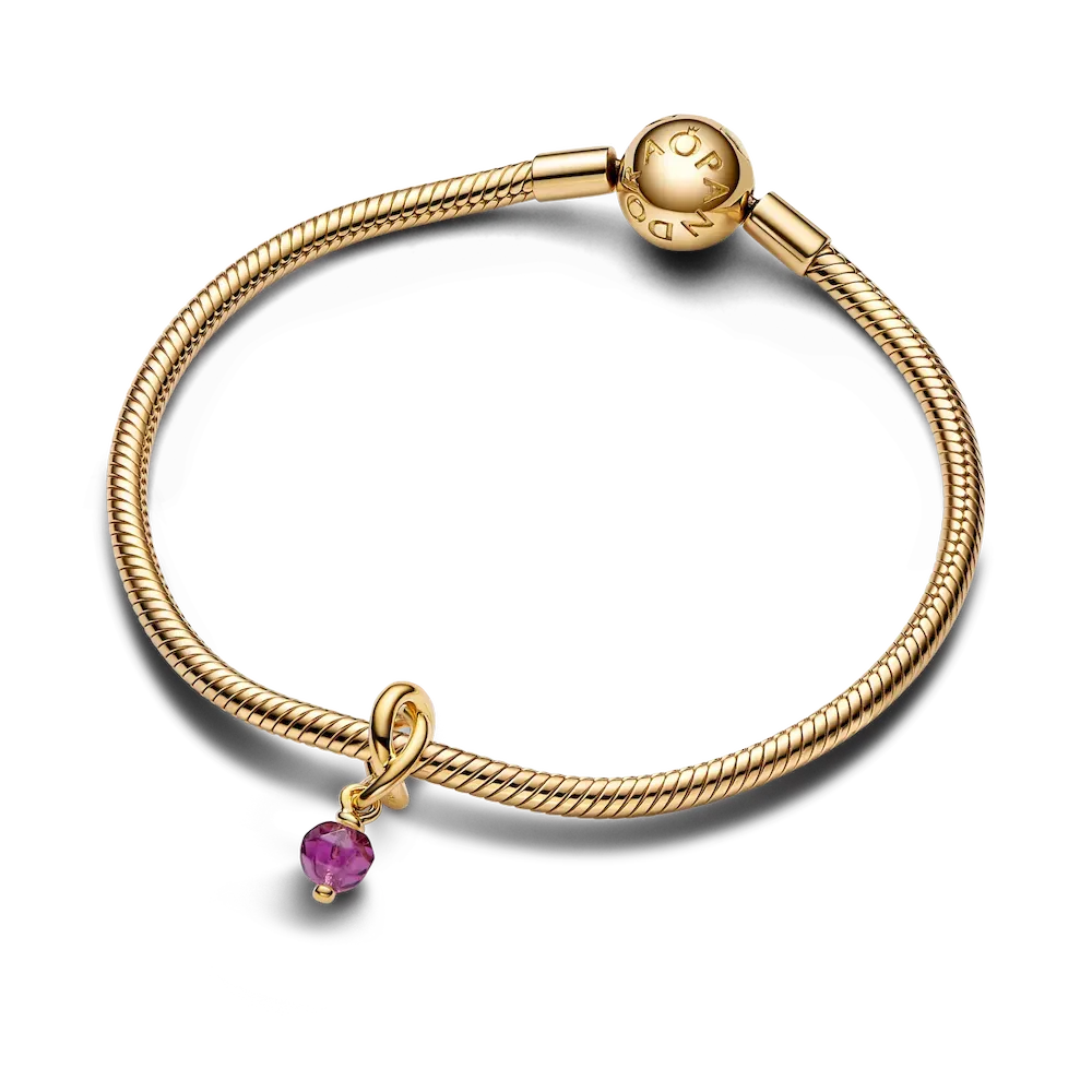 Celebrate love and connection with the February Engravable Dangle Charm Necklace Set. This set features the versatile Rolo Chain Necklace, made from polished 14k gold-plated metal, and an Engravable Rectangle Tag Pendant that you can personalize to make it your own. The February Charm brings a sweet touch with its grape purple crystal, dangling from a knotted infinity circle. It’s the ideal symbol of affection, making it a perfect piece for expressing love during the month of romance.