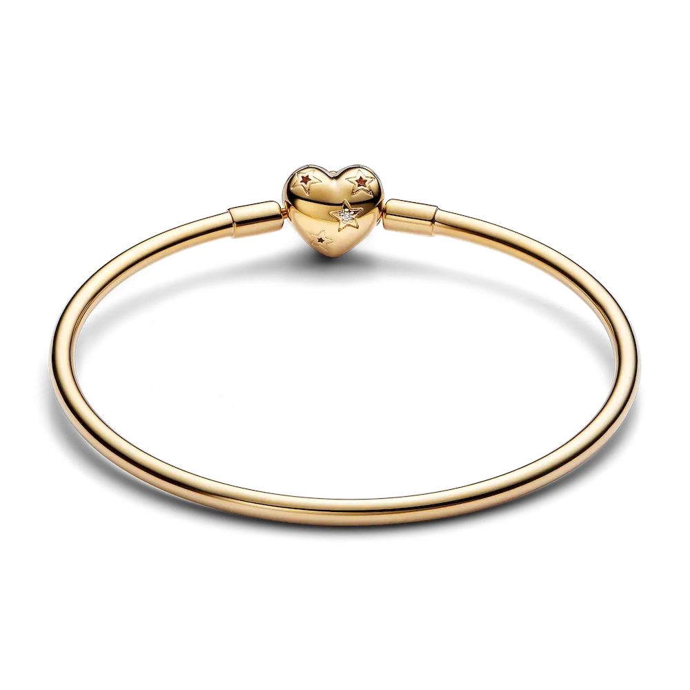 Fall in love with our Celestial Heart Clasp Bangle. Plated in 14k gold, our iconic heart clasp gets a stellar update, featuring a moonlit night sky complete with sparkling stones. Whether you wear it with or without charms, alone or as part of a layered look, it’s destined to be a forever favourite.