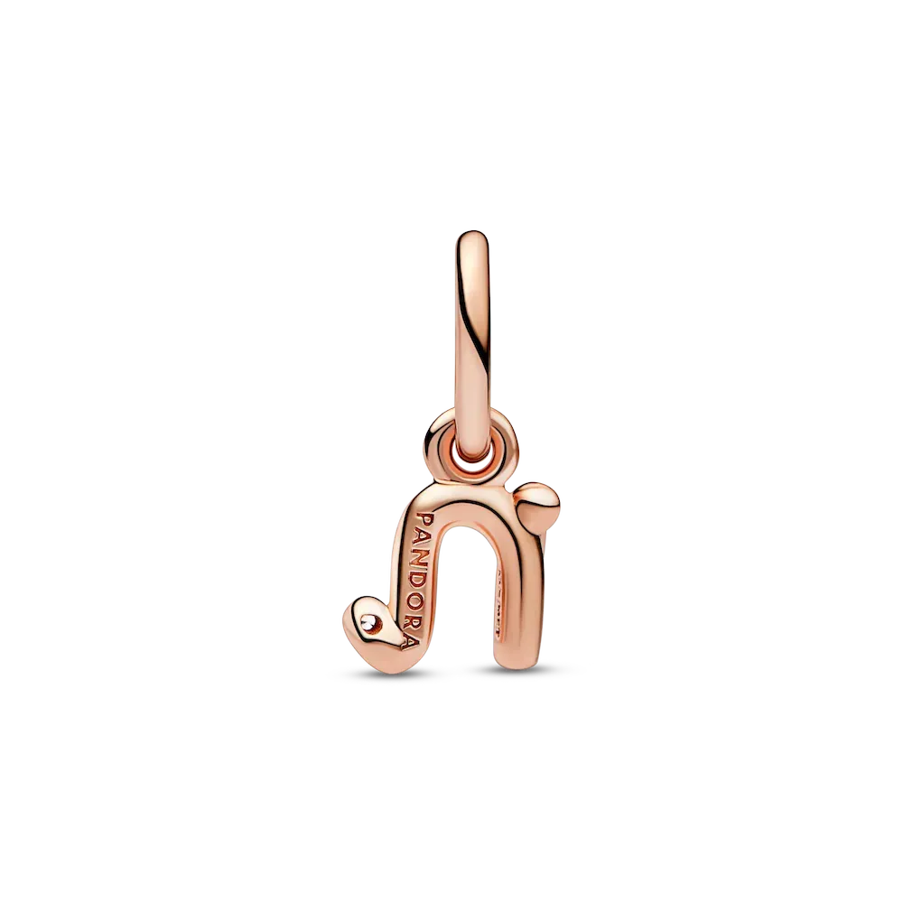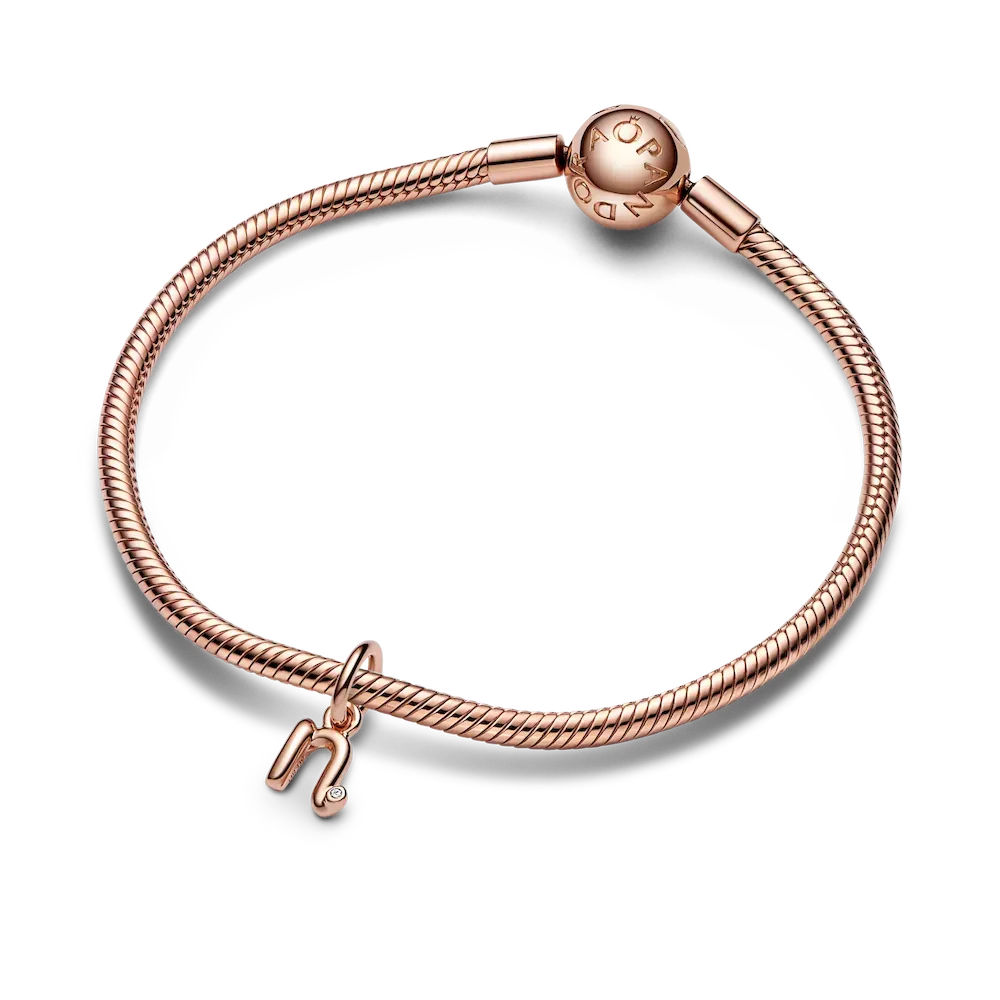 Spell it out with our Letter n Script Alphabet Dangle Charm. Inspired by bent wire and the movement of a pen across paper, this 14k rose gold-plated charm features a three-dimensional letter N that looks handwritten. The end of the lower-case letter is playfully punctuated with a round brilliant-cut clear cubic zirconia, representing that there is something precious in all of us. Wear it as a symbol of who you are or a reminder of someone you love.