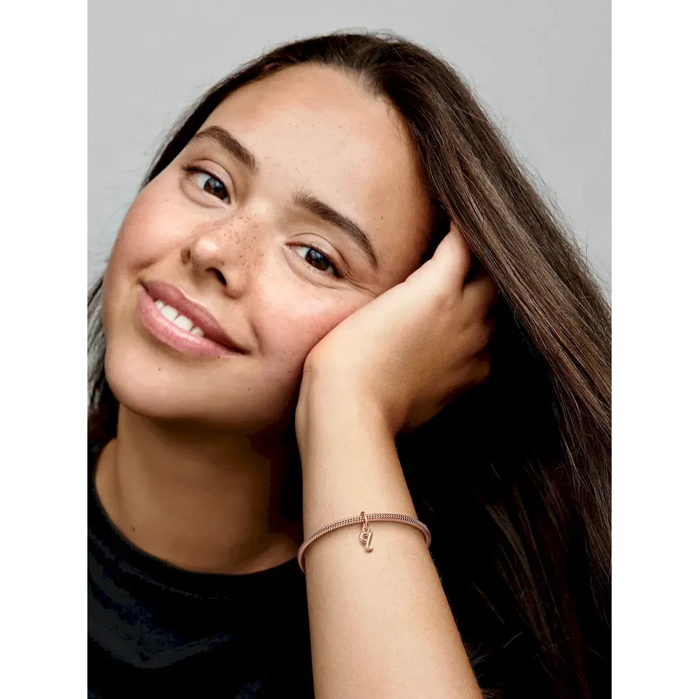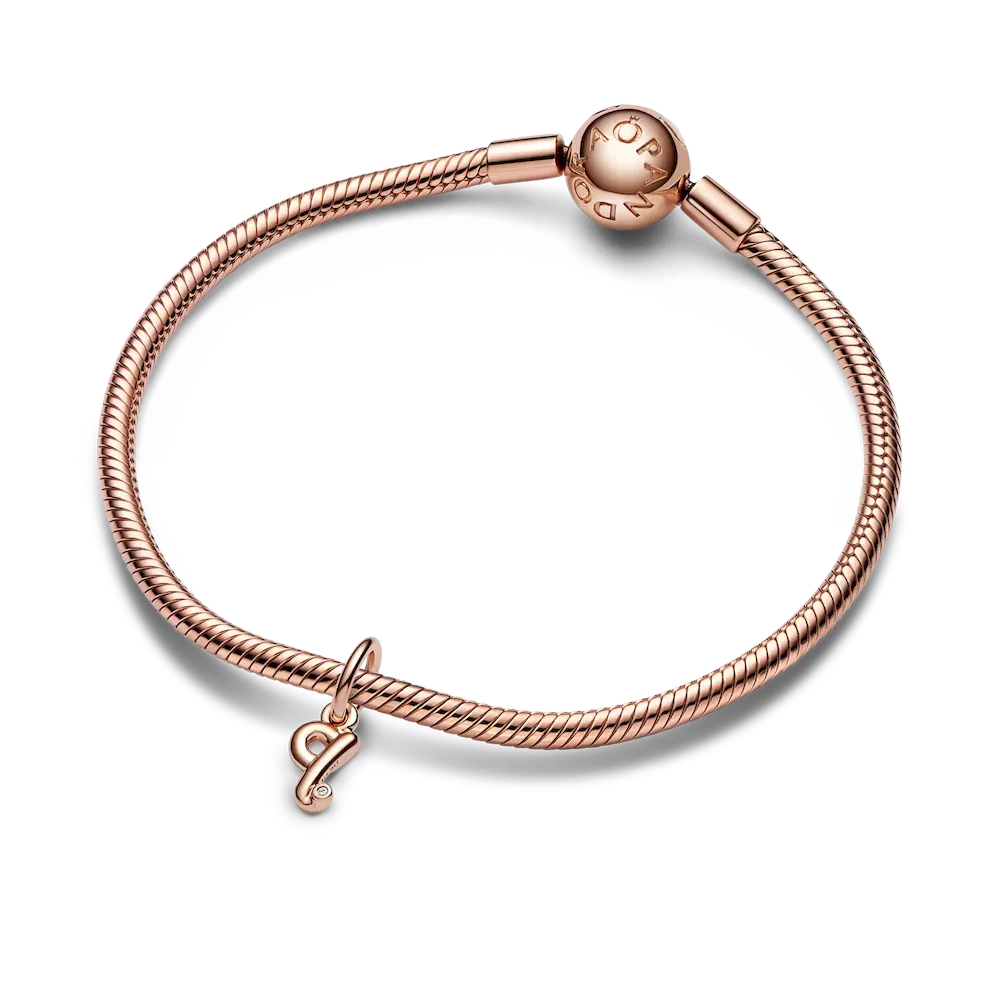Spell it out with our Letter q Script Alphabet Dangle Charm. Inspired by bent wire and the movement of a pen across paper, this 14k rose gold-plated charm features a three-dimensional letter Q that looks handwritten. The end of the lower-case letter is playfully punctuated with a round brilliant-cut clear cubic zirconia, representing that there is something precious in all of us. Wear it as a symbol of who you are or a reminder of someone you love.
