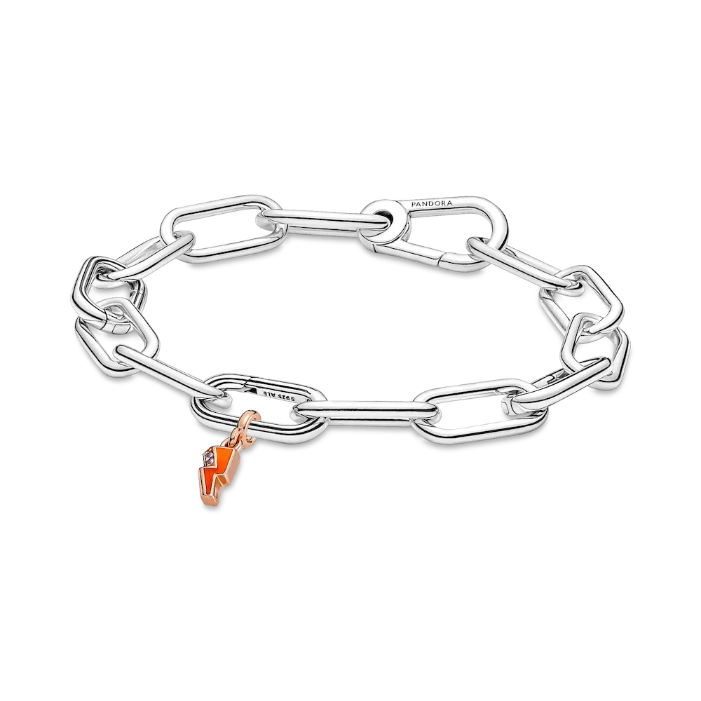 Channel your inner power with the Pandora ME Light Me Up Mini Dangle Charm, featuring two blue man-made crystals and bold enamel in a fearless orange-to-red gradient. The lightning bolt is a symbol of creativity, strength and intuition. This mini dangle charm is made to style on Pandora ME Openable Links across your link chain bracelets, necklaces, rings and hoops.