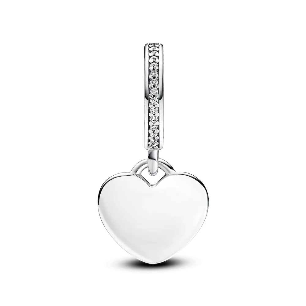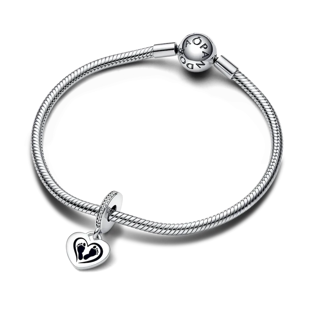 The Engravable Footprint Dangle Charm is a sweet symbol of love and connection. This heart-shaped sterling silver dangle features an engraved open heart with two tiny footprints inside, representing the journey shared with someone special. The charm’s delicate design and movement add personality, while the back offers space for personal engraving. A meaningful charm to celebrate love, growth, and the cherished moments with those who make your heart full.