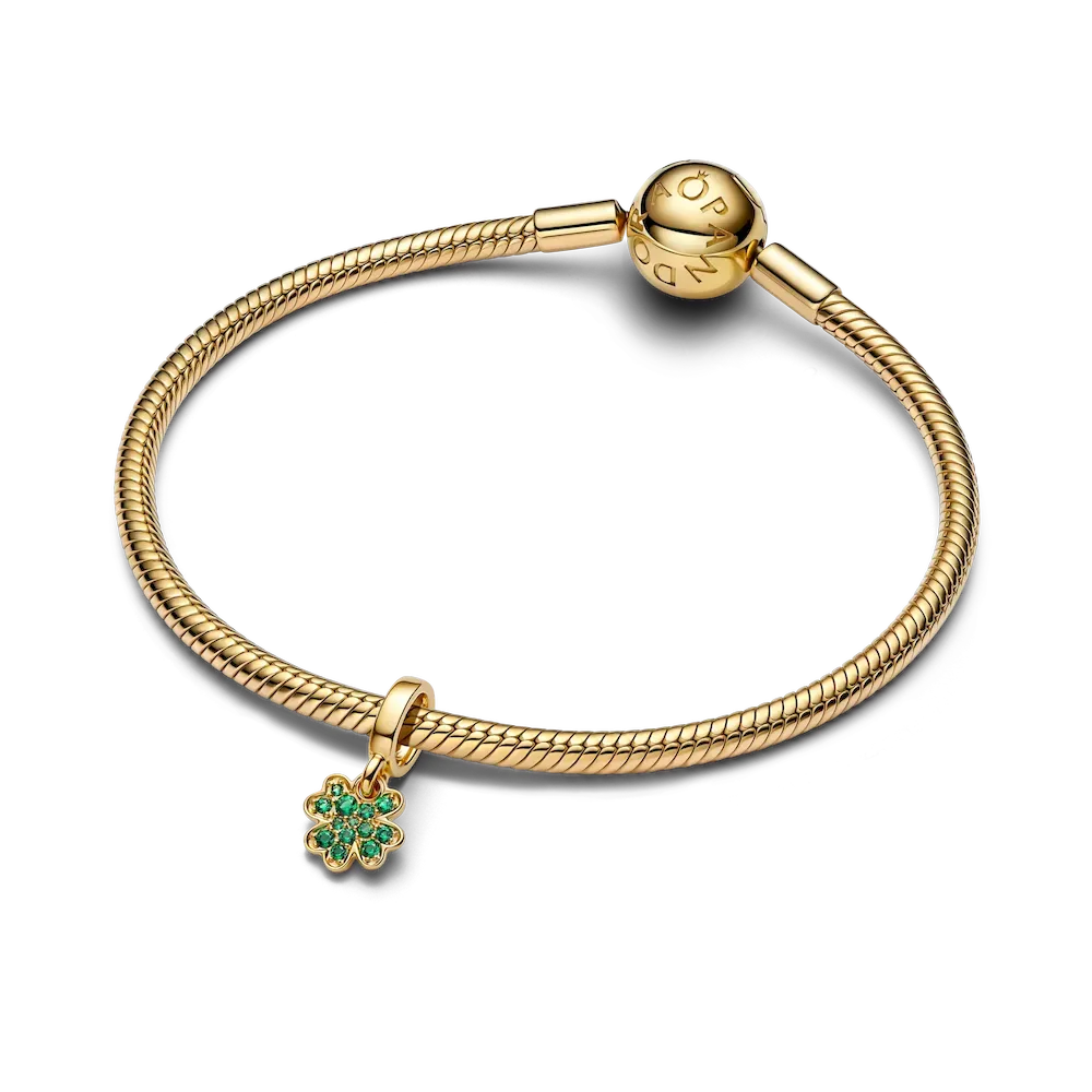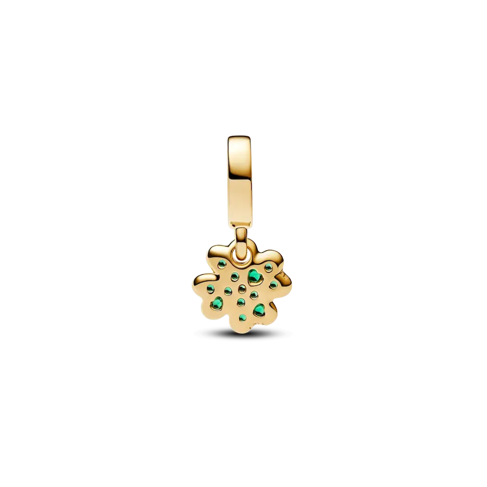 Bring luck into your life with this four-leaf clover charm in 14k gold plating, outlined in royal green pavé. A sparkling symbol of positivity, uniqueness and good fortune.